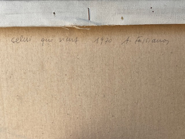 Υπογεγραμμένο μπροστά στα ελληνικά και στο πίσω μέρος στα γαλλικά με τίτλο, ημερομηνία και υπογραφή του καλλιτέχνη.